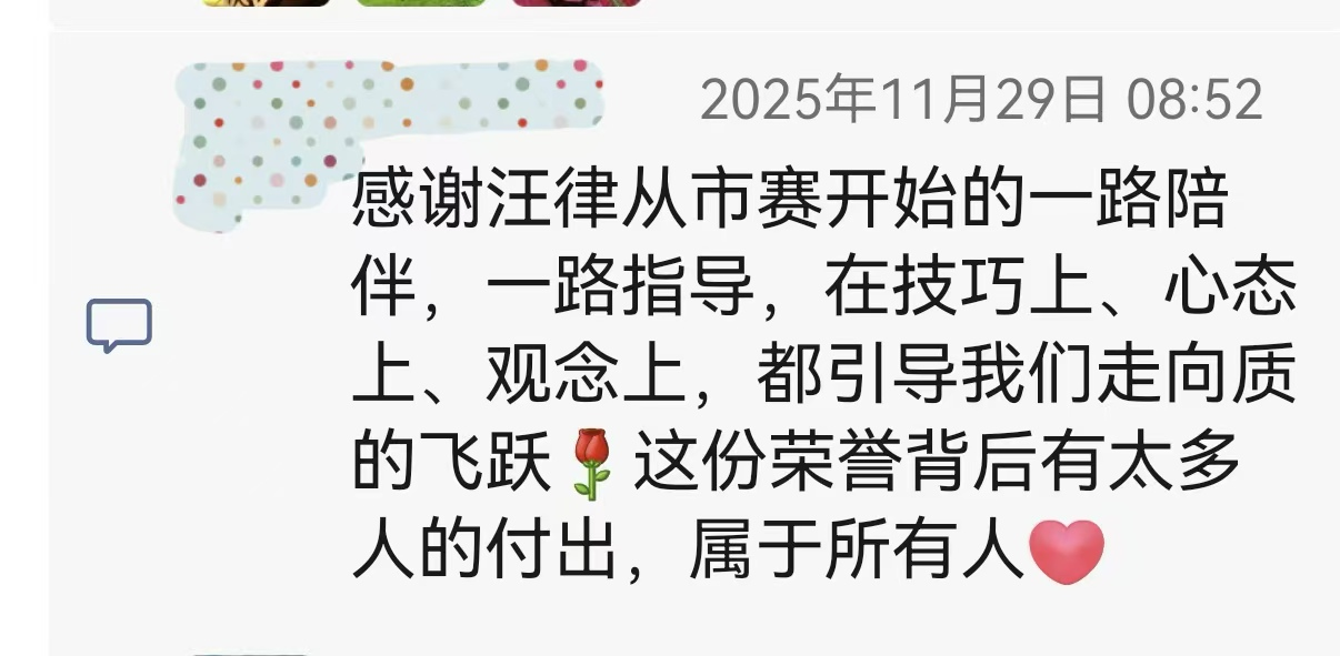 省赛前,汪志华律师受邀担任深圳市代表队专业指导老师之一,辅导选手封闭式备赛。在广东省妇联、省司法厅联合主办的“粤家和”婚姻家庭纠纷调解技能大赛中,深圳市代表队表现卓越,斩获“团体一等奖”,三名选手均荣获“十佳调解员”称号并入选国赛集训队。