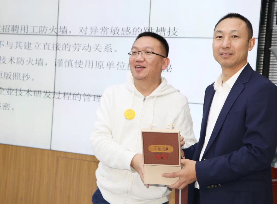 来访客人表示彭律师的分享很有价值,本次互动收获颇丰。子牙学宫三期班长兰向辉同学代表来访客人向彭彦平律师赠送了礼品。
