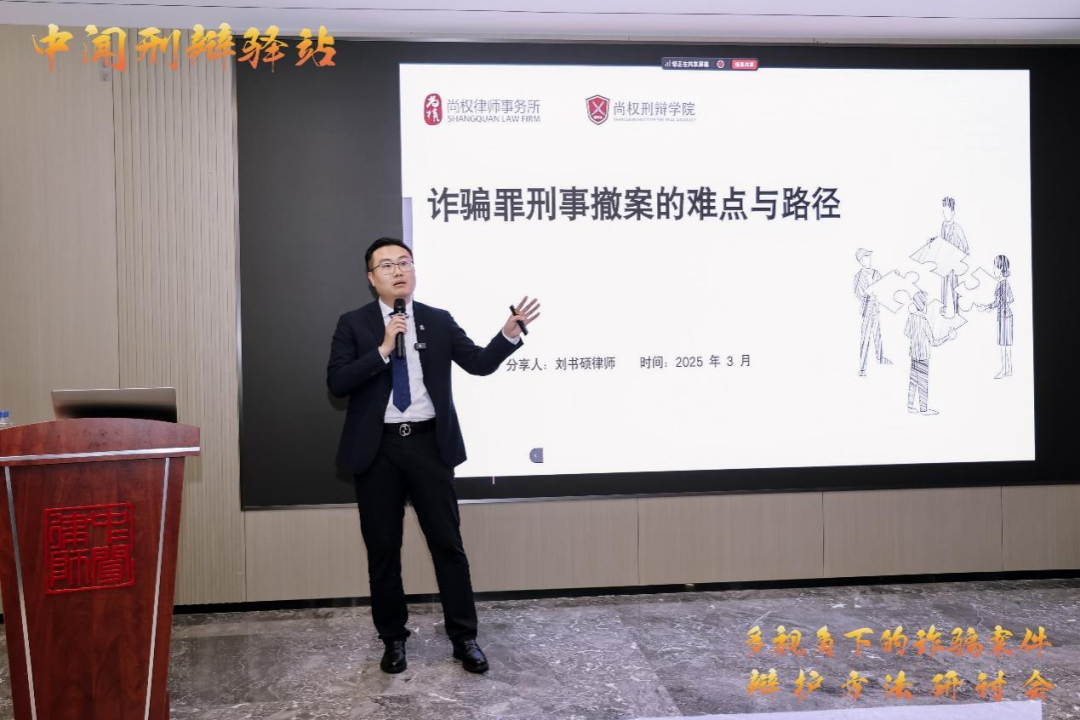 北京市尚权(深圳)律师事务所副主任刘书硕律师分享了“诈骗罪刑事撤案的难点与路径”。他通过具体案例,深入分析了虚构事实、基于虚构事实的明知以及基于虚构事实作出行为等争议焦点,并强调了等同于定罪的撤案证明、较为严格的侦查终结程序、不设置侦查期限、不得中止侦查以及监督制约方式在刑事撤案过程中的重要性。