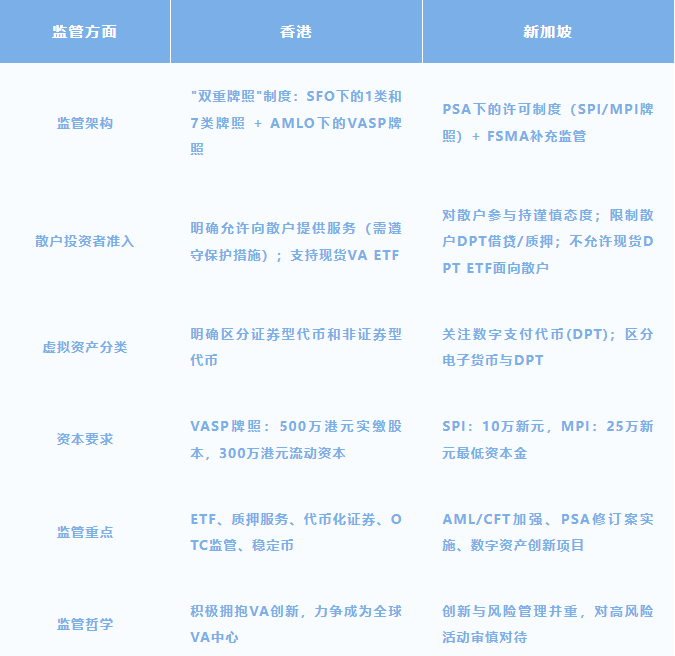 香港由证监会(SFC)负责,新加坡由金融管理局(MAS)负责,监管职责清晰。