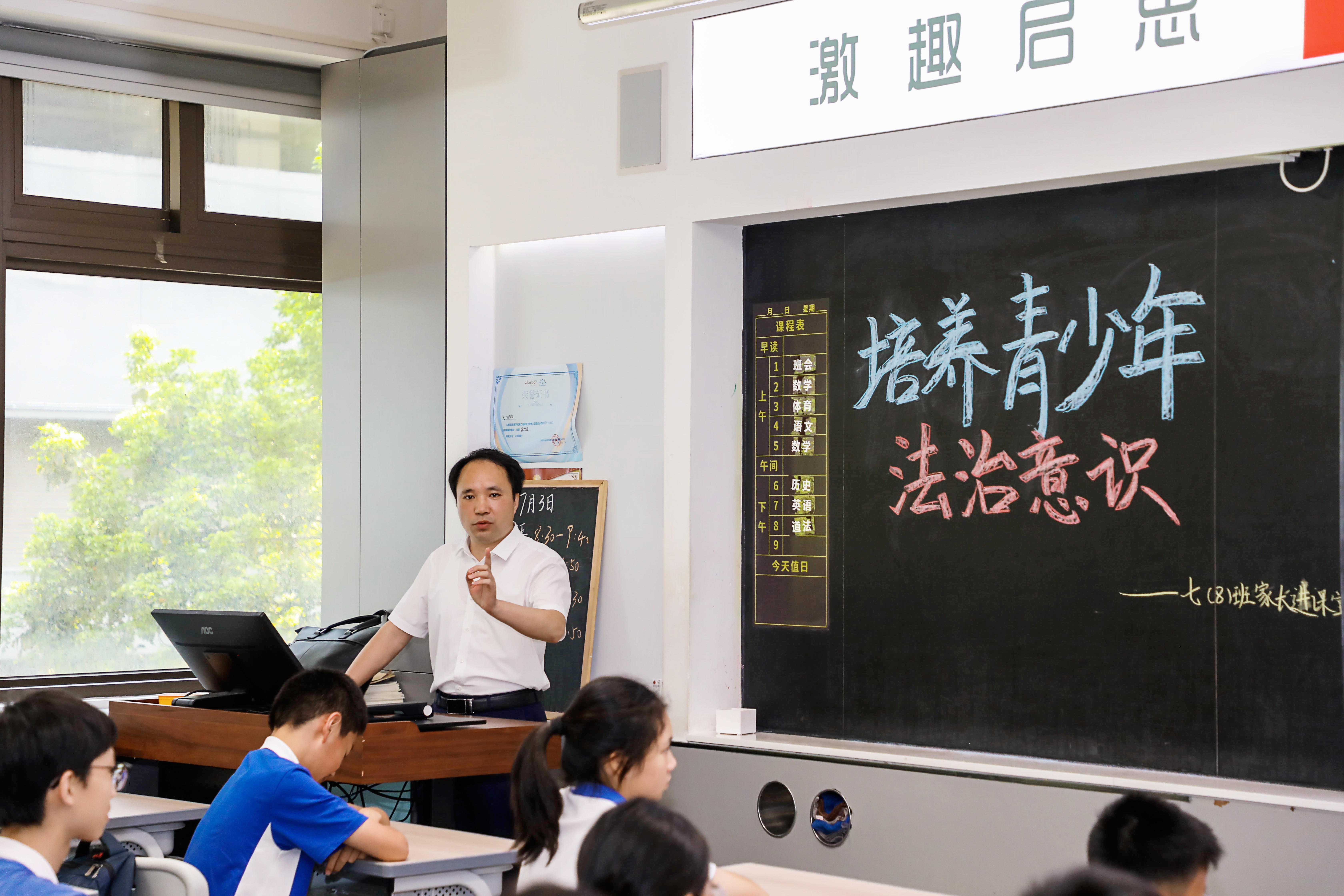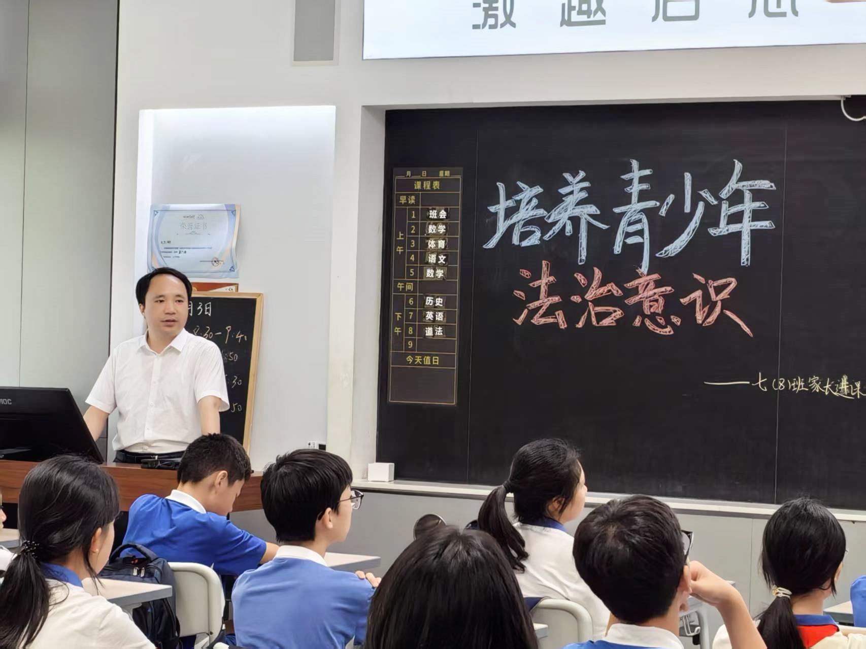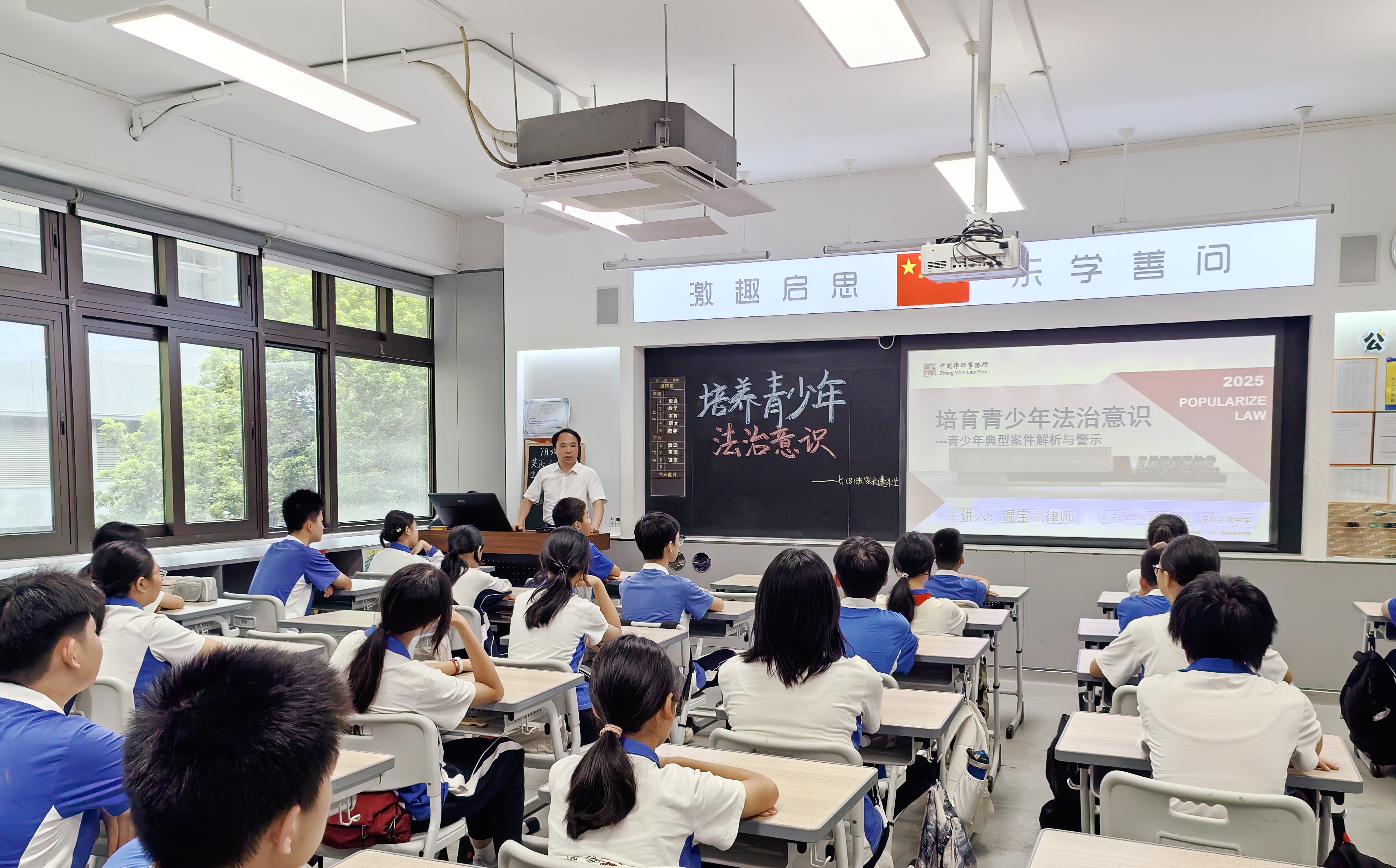 在全面推进依法治国的新时代背景下,青少年法治教育已成为法治社会建设的重要基石。2025年7月7日,北京市中闻(深圳)律师事务所资深律师温宝斌博士受邀走进深圳南山实验教育集团前海港湾学校七(8)班,以《培育青少年法治意识——青少年典型案件解析与警示》为主题,为同学们带来了一场别开生面的法治教育专题讲座。