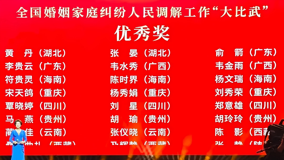 背景信息:2025年举办的全国婚姻家庭纠纷人民调解工作“大比武”活动是在婚姻家庭纠纷人民调解领域首次开展的全国性技能比赛活动。活动历时8个月,9.8万名人民调解员参与选拔,辐射带动310万人提升专业能力。